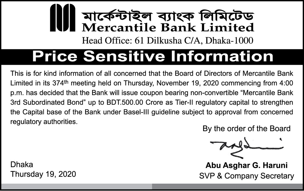 Price Sensitive Information of Mercantile Bank Limited