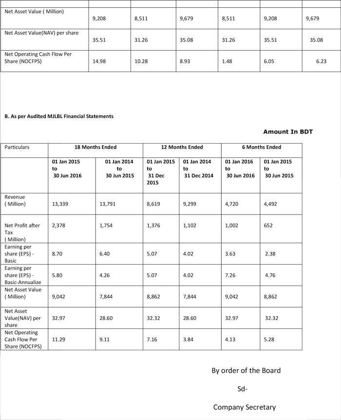 Q2 Financial Statements (Un-audited) of MJL Bangladesh Limited