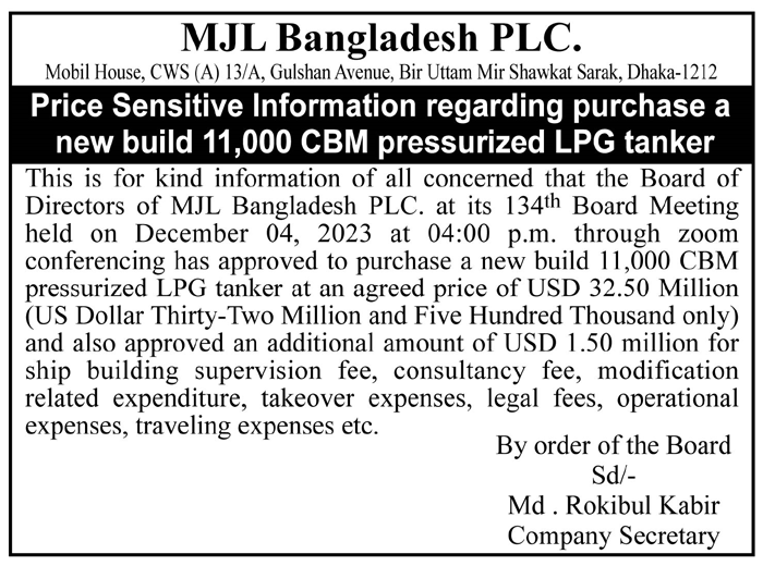 Price Sensitive Information of MJL Bangladesh PLC.