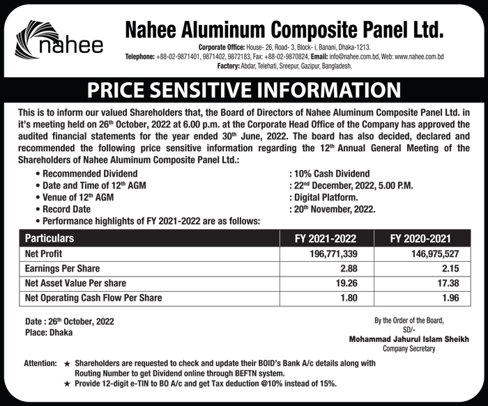 Price Sensitive Information of Nahee Aluminum Composite Panel Ltd.