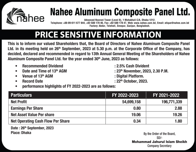Price Sensitive Information of Nahee Aluminum Composite Panel PLC.
