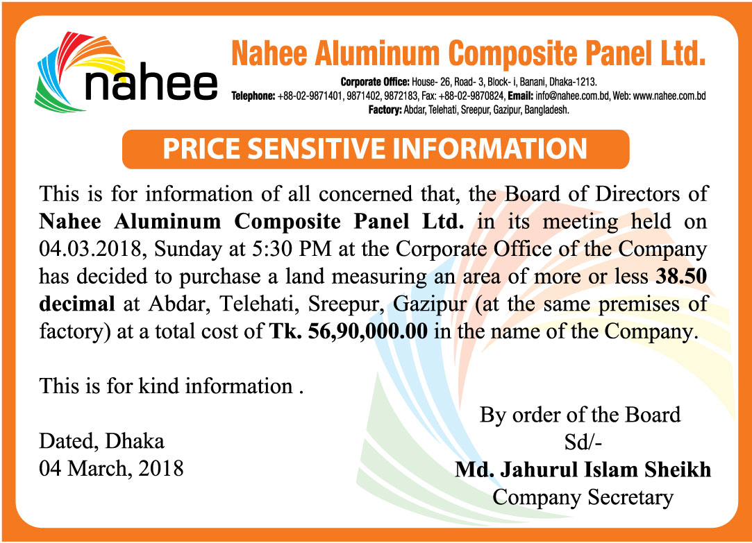 Price Sensitive Information of Nahee Aluminum Composite Panel PLC.