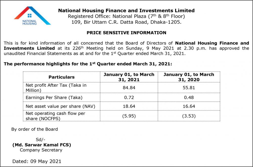 Price Sensitive Information of National Housing Finance PLC