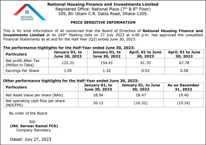 Price Sensitive Information of National Housing Finance and Investments Limited