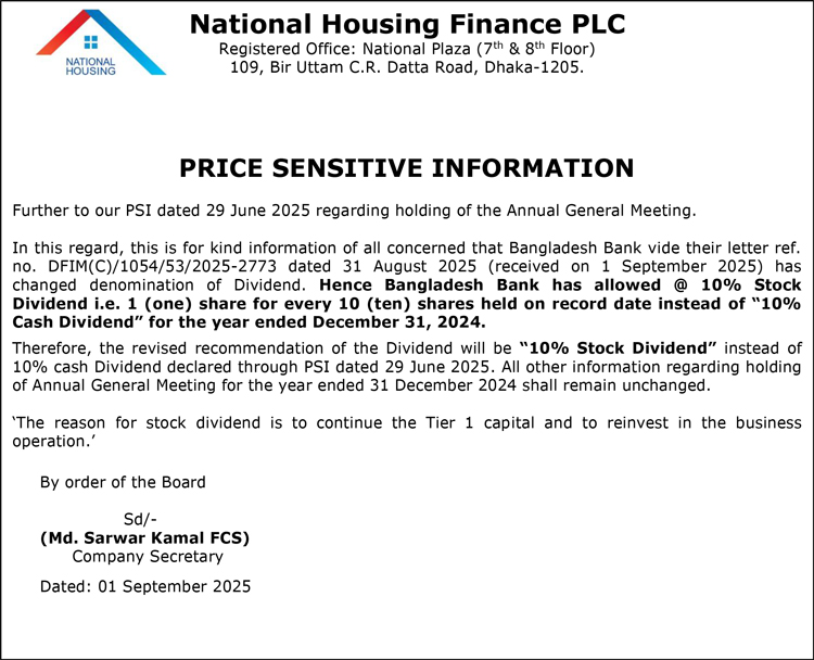 Price Sensitive Information of National Housing Finance and Investments Limited
