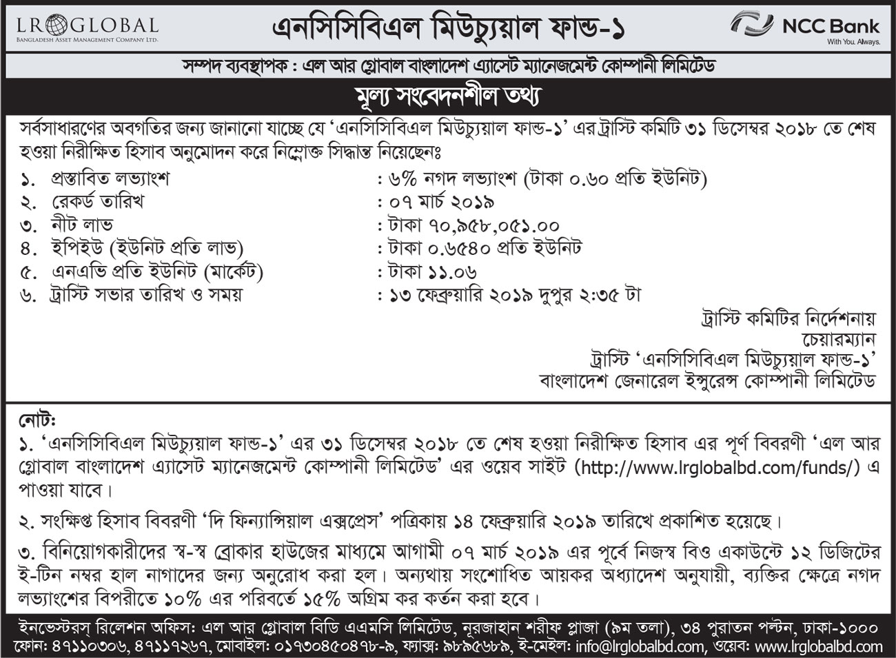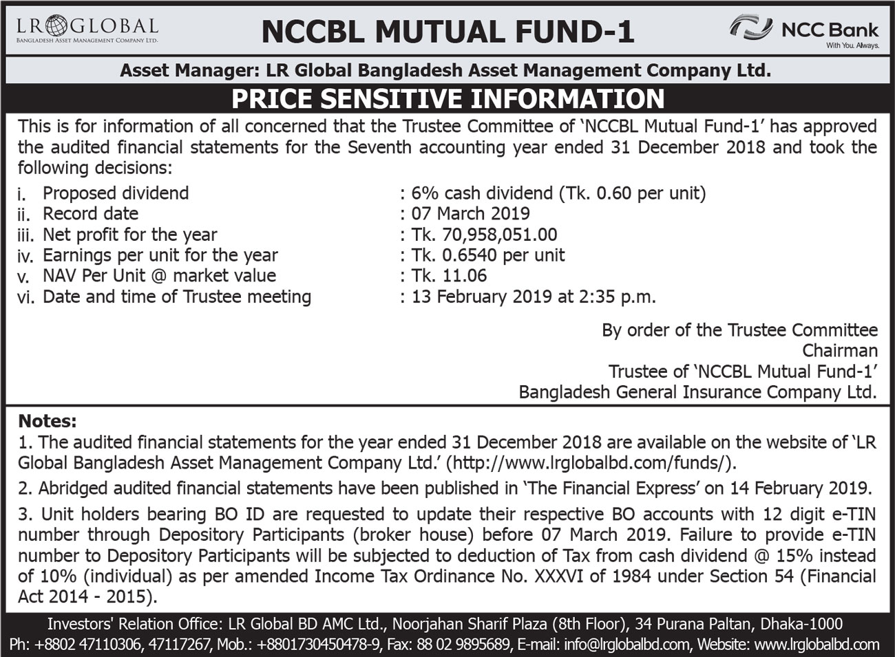 Price Sensitive Information of NCCBL Mutual Fund-1