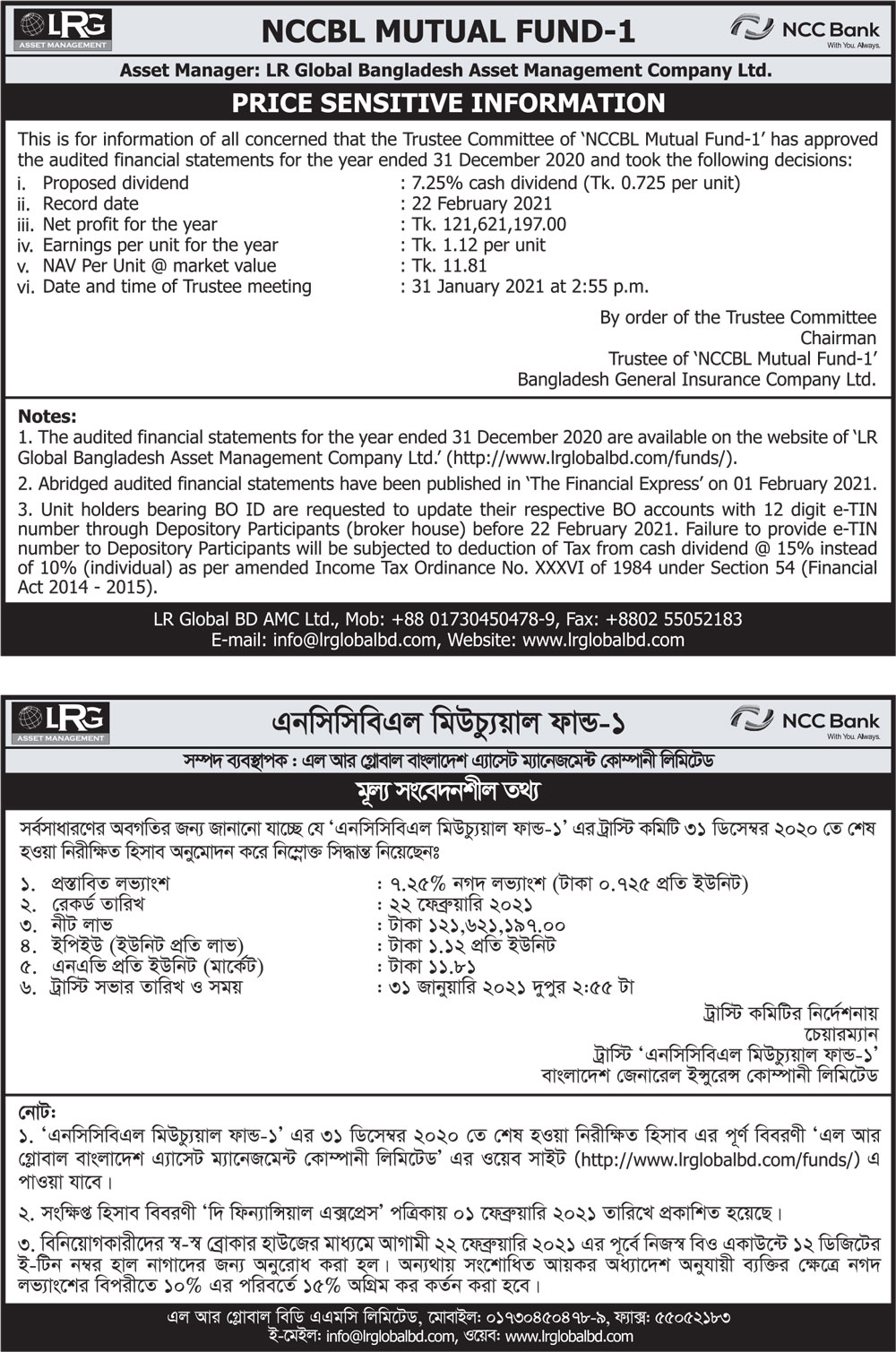 Price Sensitive Information of NCCBL Mutual Fund-1