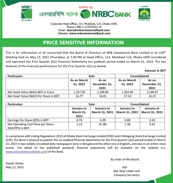 Price Sensitive Information of NRB Commercial Bank Ltd