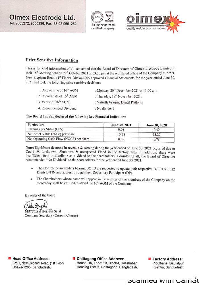 Q2 Financial Statements (Un-audited) of Oimex Electrode Limited