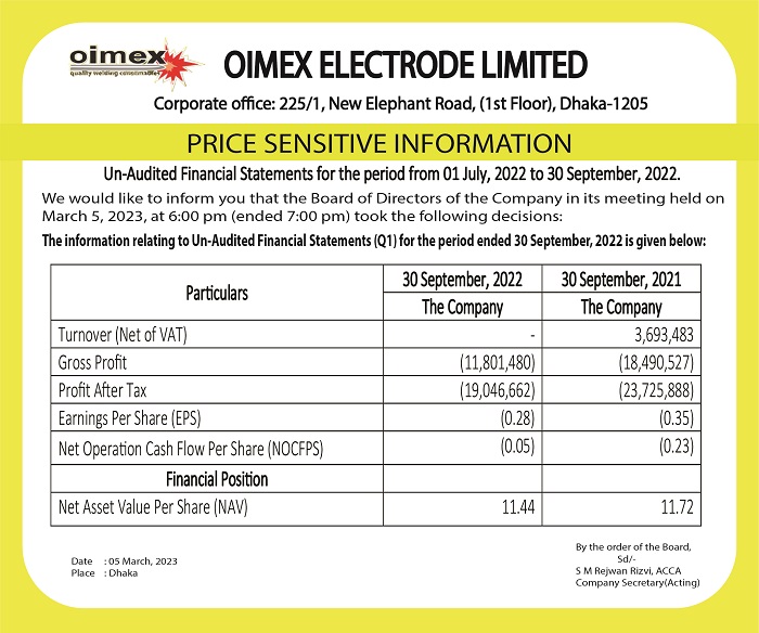 Q2 Financial Statements (Un-audited) of Oimex Electrode Limited