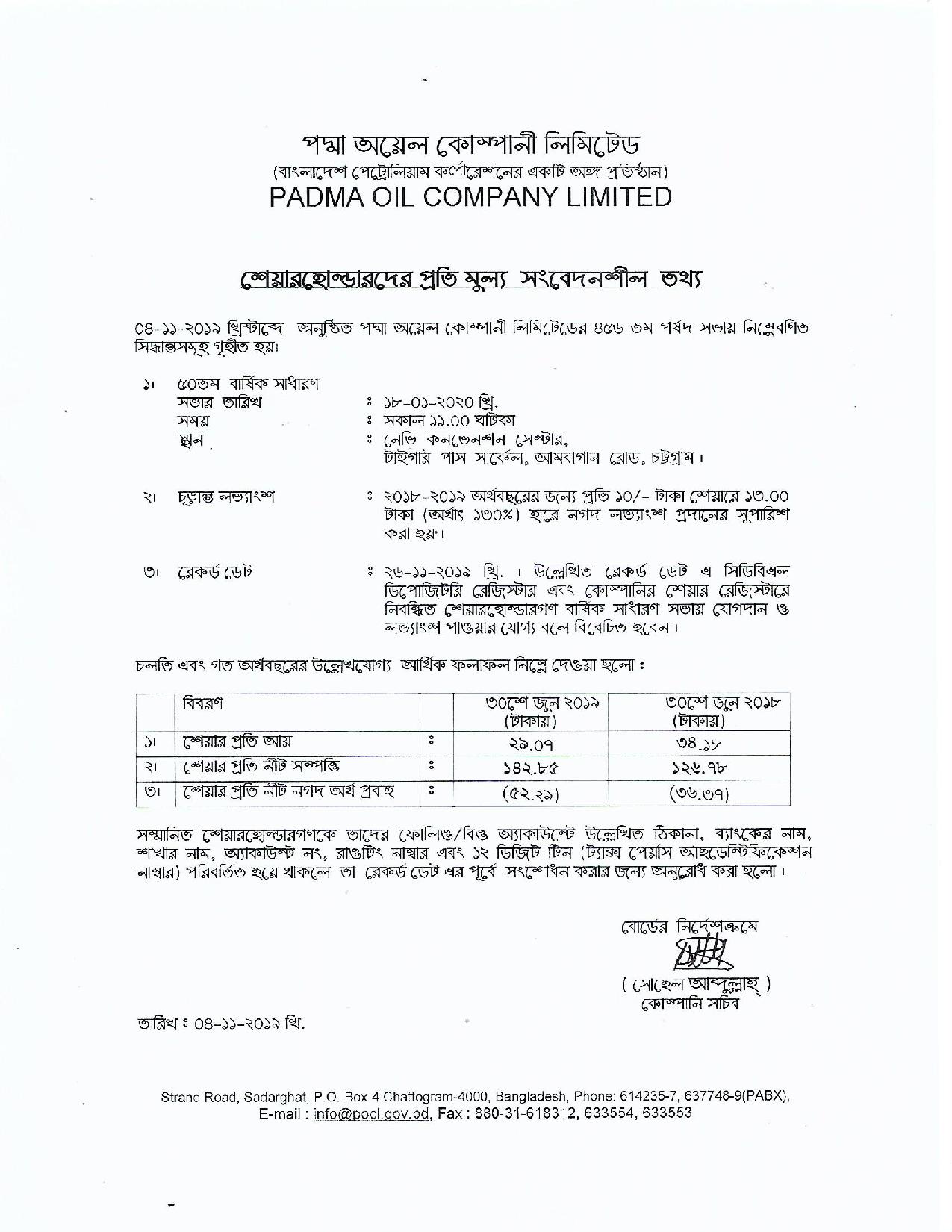Price Sensitive Information of Padma Oil Company Ltd.