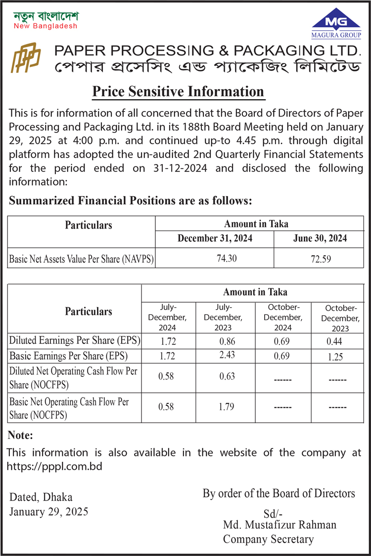 Price Sensitive Information of Paper Processing & Packaging Limited