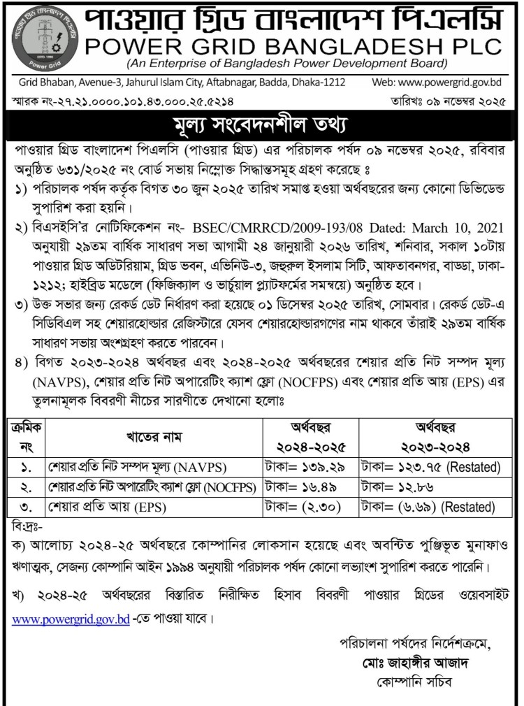 Price Sensitive Information of Power Grid Bangladesh PLC
