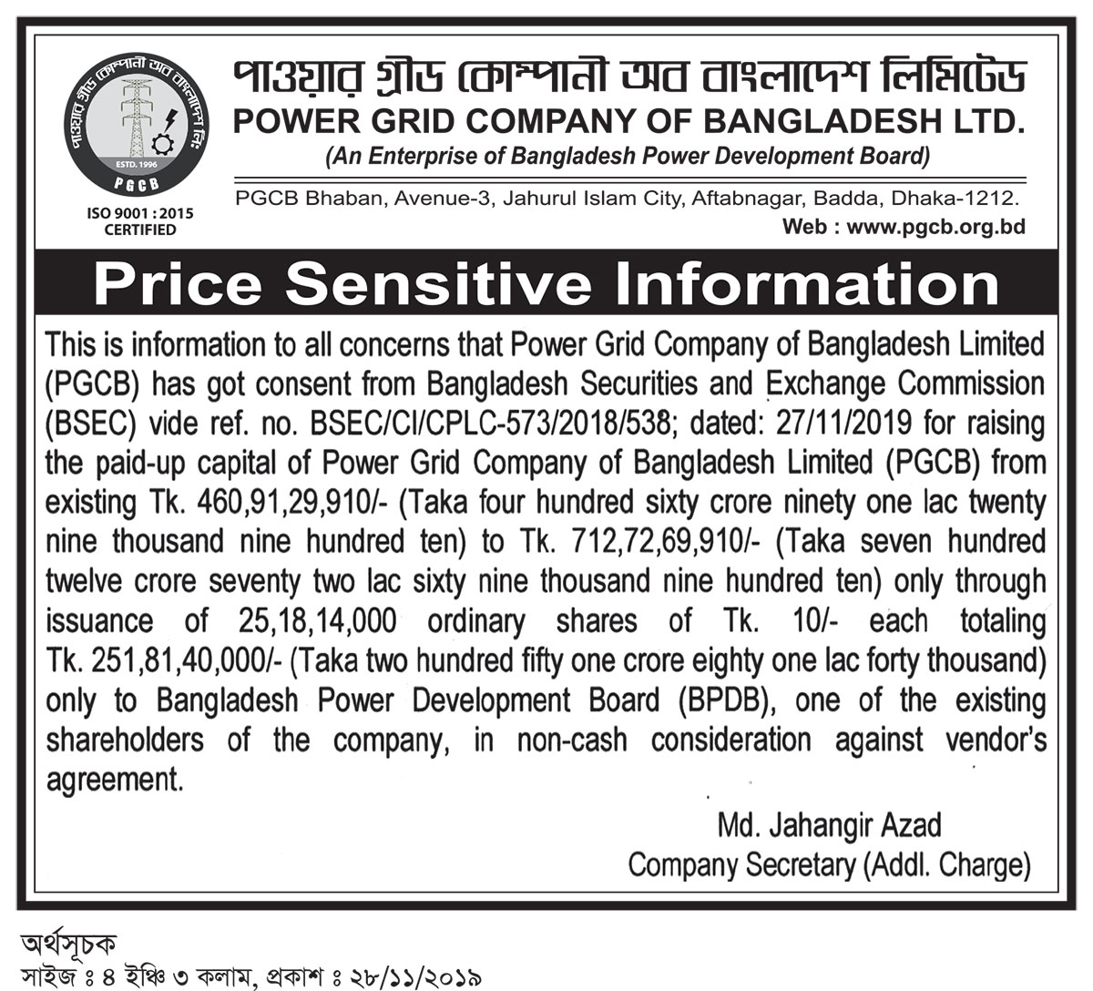 Price Sensitive Information of Power Grid Bangladesh PLC