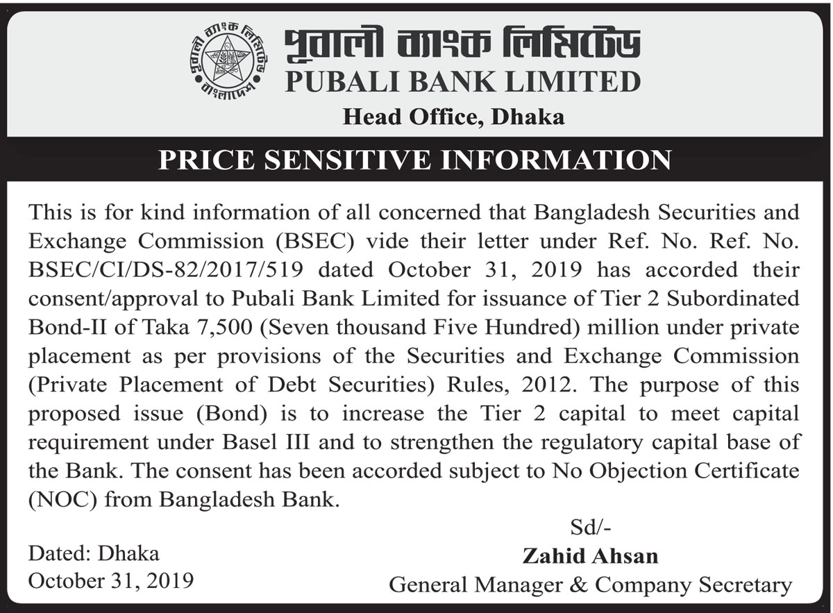 Half Yearly Financial Statements of Pubali Bank PLC.