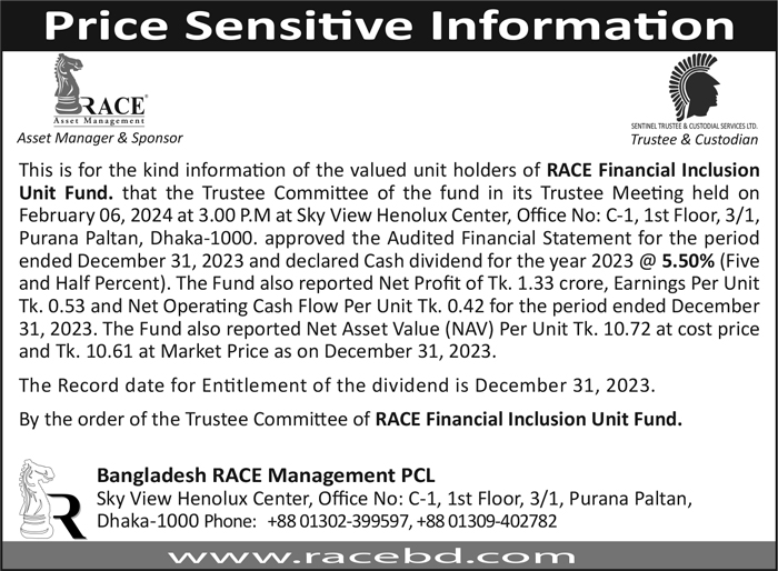 Price Sensitive Information of RACE Financial Inclusion Unit Fund