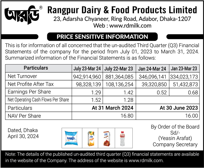 Price Sensitive Information of Rangpur Dairy & Food Products Ltd.
