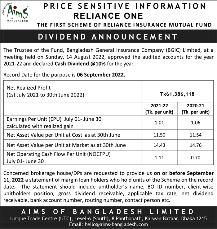 Price Sensitive Information of Dividend Announcement of Reliance One