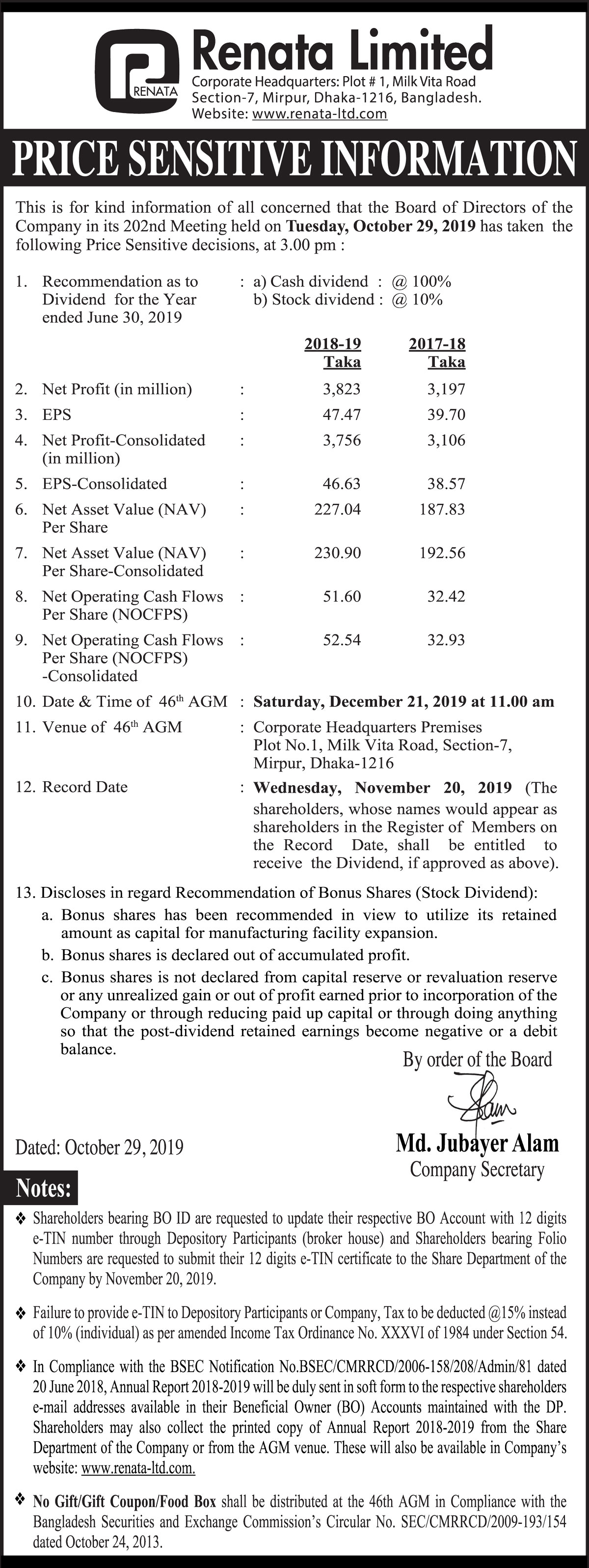 Half Yearly (Q2) Financial Statements (Unaudited) of Renata Limited