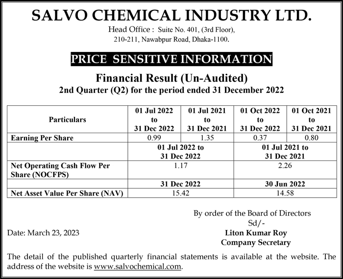 Price Sensitive Information of Salvo Chemical Industry Limited