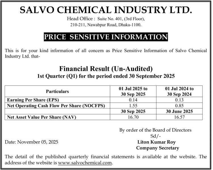 Price Sensitive Information of Salvo Chemical Industry Limited.