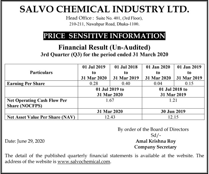 Price Sensitive Information of Salvo Chemical Industry Limited