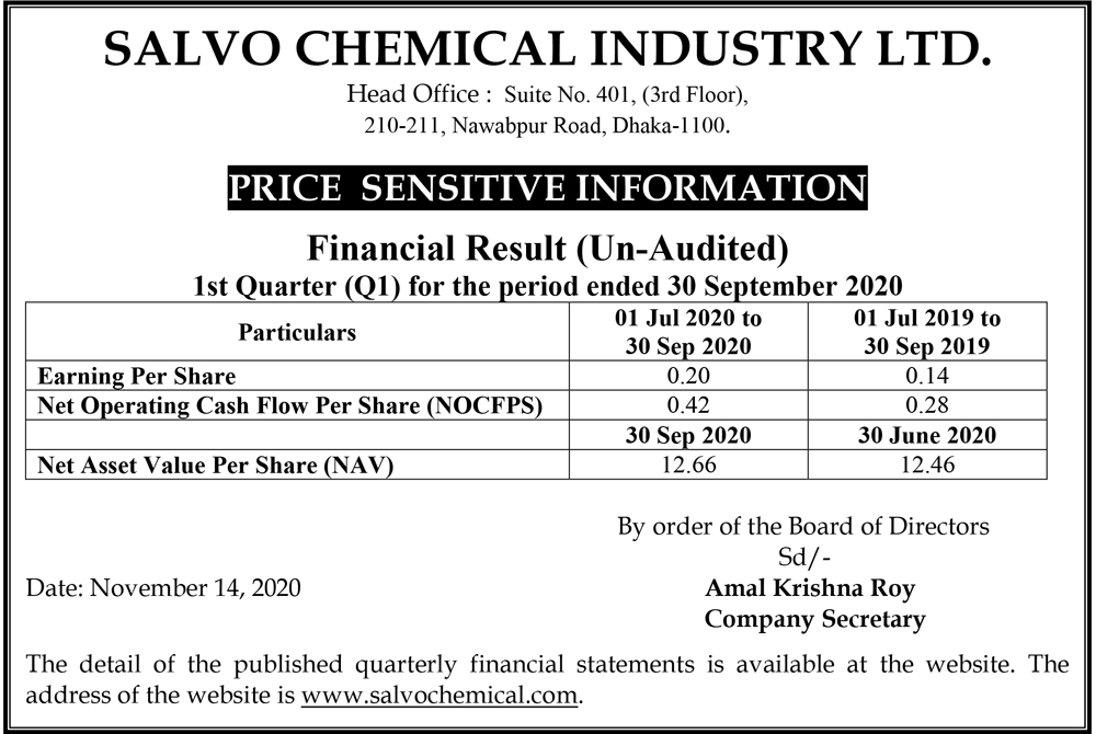 Price Sensitive Information of Salvo Chemical Industry Limited