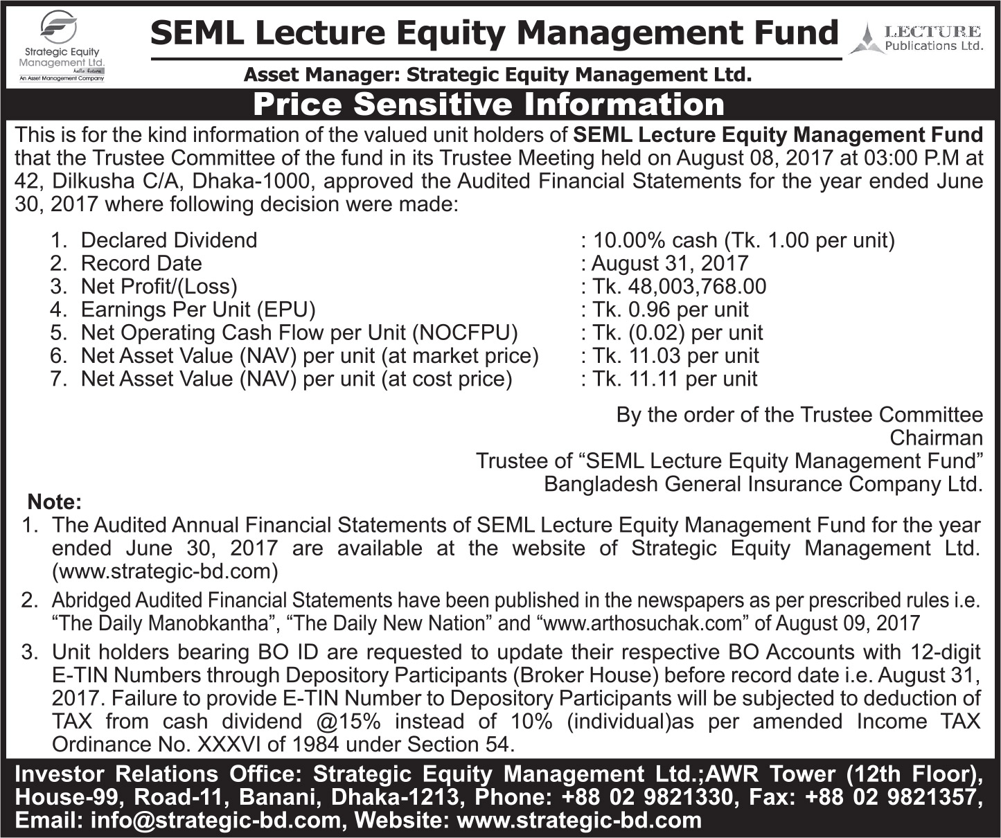 Price Sensitive Information of SEML Lecture Equity Management Fund