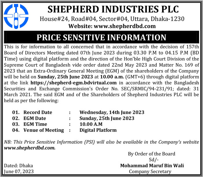 Cash Devidend Distribution Noitce of Shepherd Industries Ltd