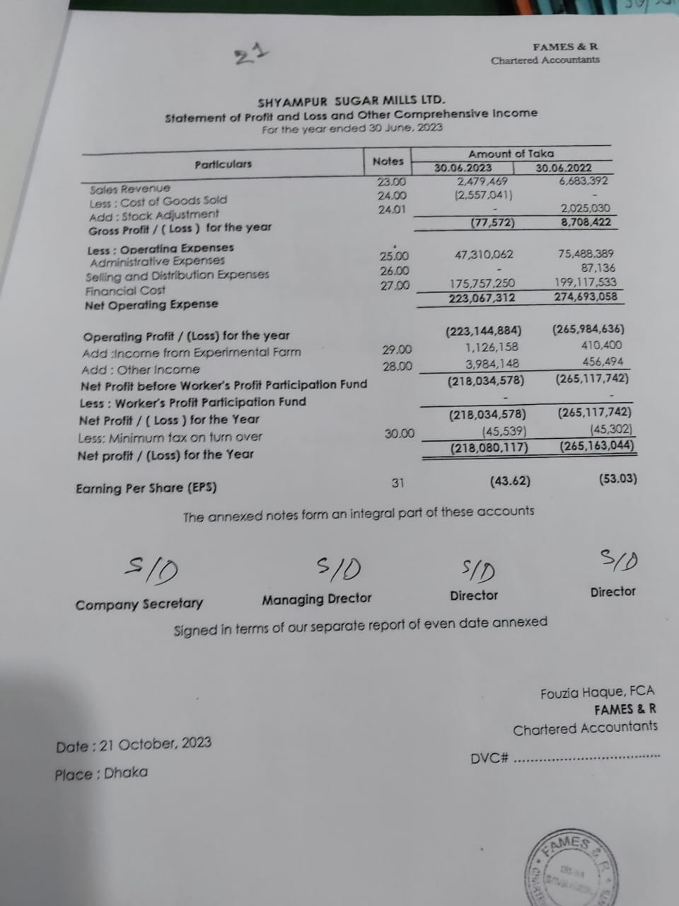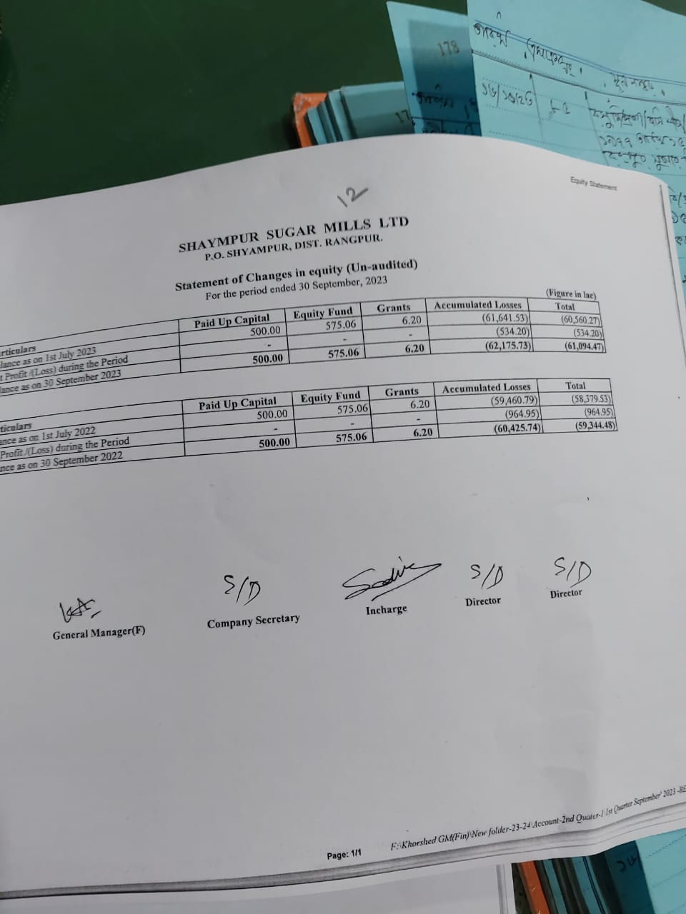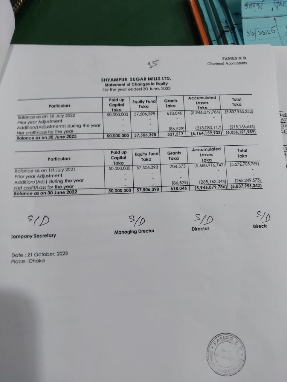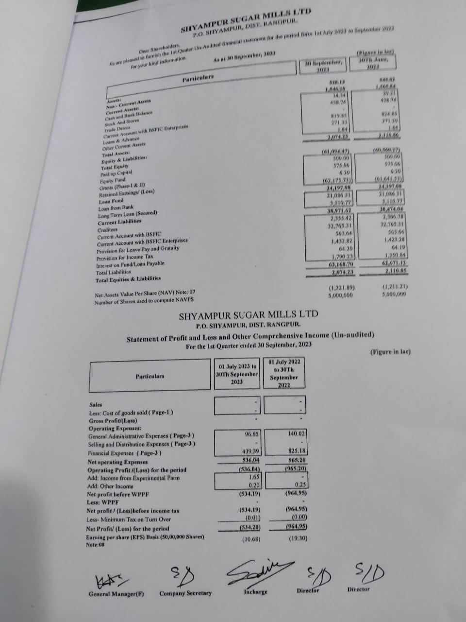 Q3 Financial Statements of Shyampur Sugar Mills Ltd