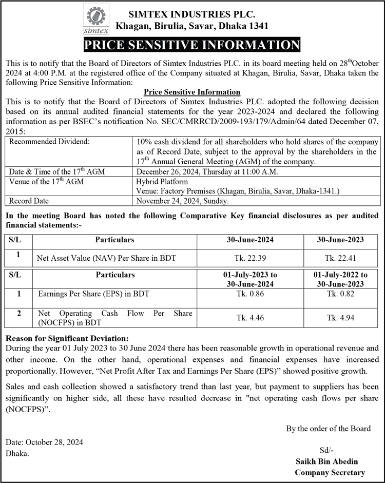 Unclaimed Dividend Notice of Simtex Industries Limited