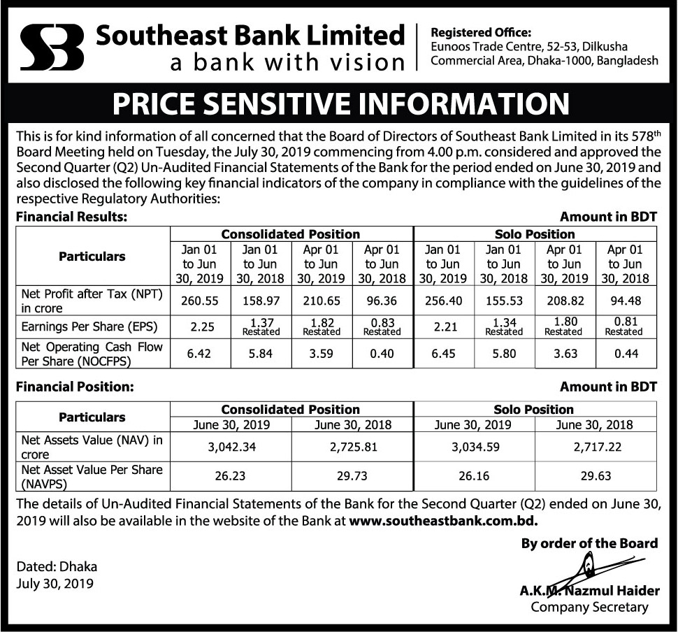 Refixation of Date of the 29th AGM of Southeast Bank PLC