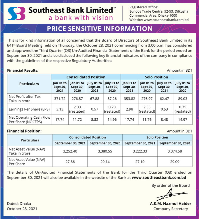 Refixation of Date of the 29th AGM of Southeast Bank PLC
