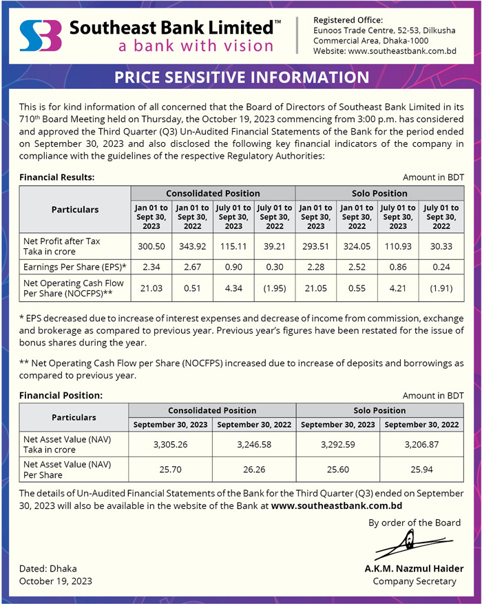 Refixation of Date of the 29th AGM of Southeast Bank PLC