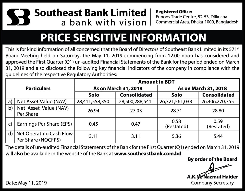 Price Sensitive Information of Southeast Bank Ltd.