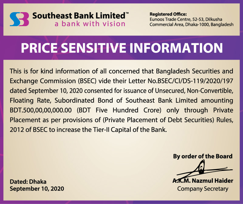 Refixation of Date of the 29th AGM of Southeast Bank PLC