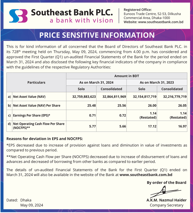 Price Sensitive Information of Southeast Bank PLC.