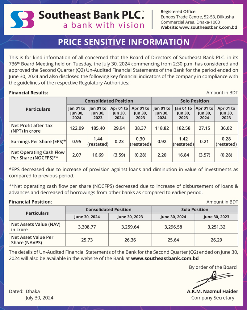 Price Sensitive Information of Southeast Bank PLC