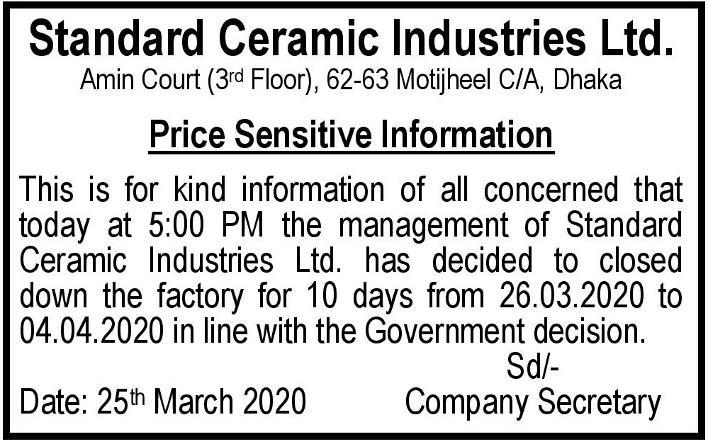 Price Sensitive Information of Standard Ceramic Industries Ltd.