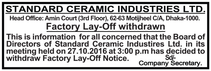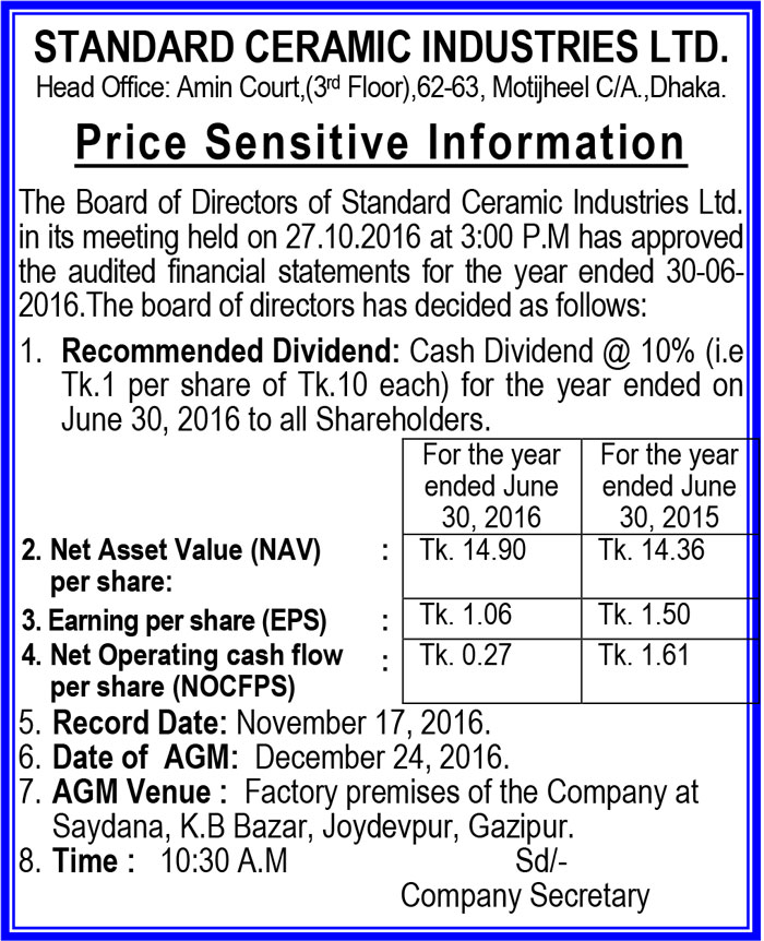 Price Sensitive Information of Standard Ceramic Industries Ltd