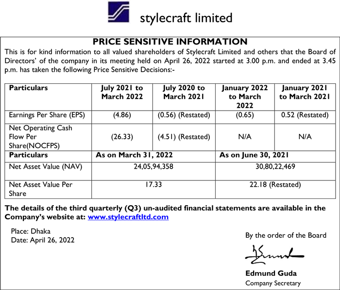 Q3 Financial Statements (Un-audited) of Stylecraft Limited
