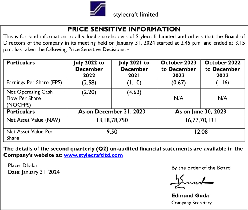 Un-audited Q3 Financial Statements of Stylecraft Limited