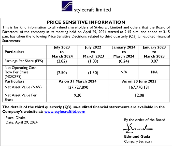 Un-audited Q3 Financial Statements of Stylecraft Limited