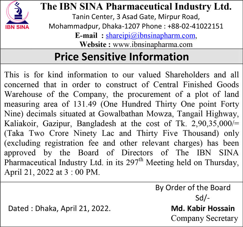 Price Sensitive Information of The IBN SINA Pharmaceutical Industry PLC