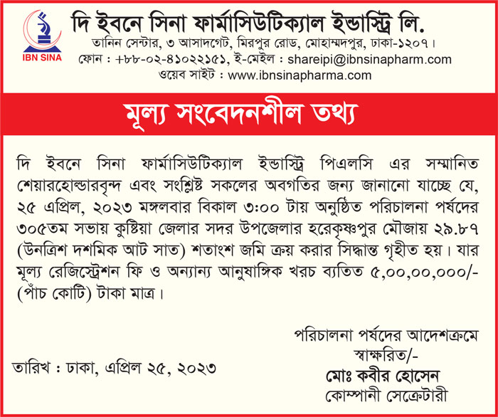 Price Sensitive Information of The IBN SINA Phamaceutical Industry PLC.