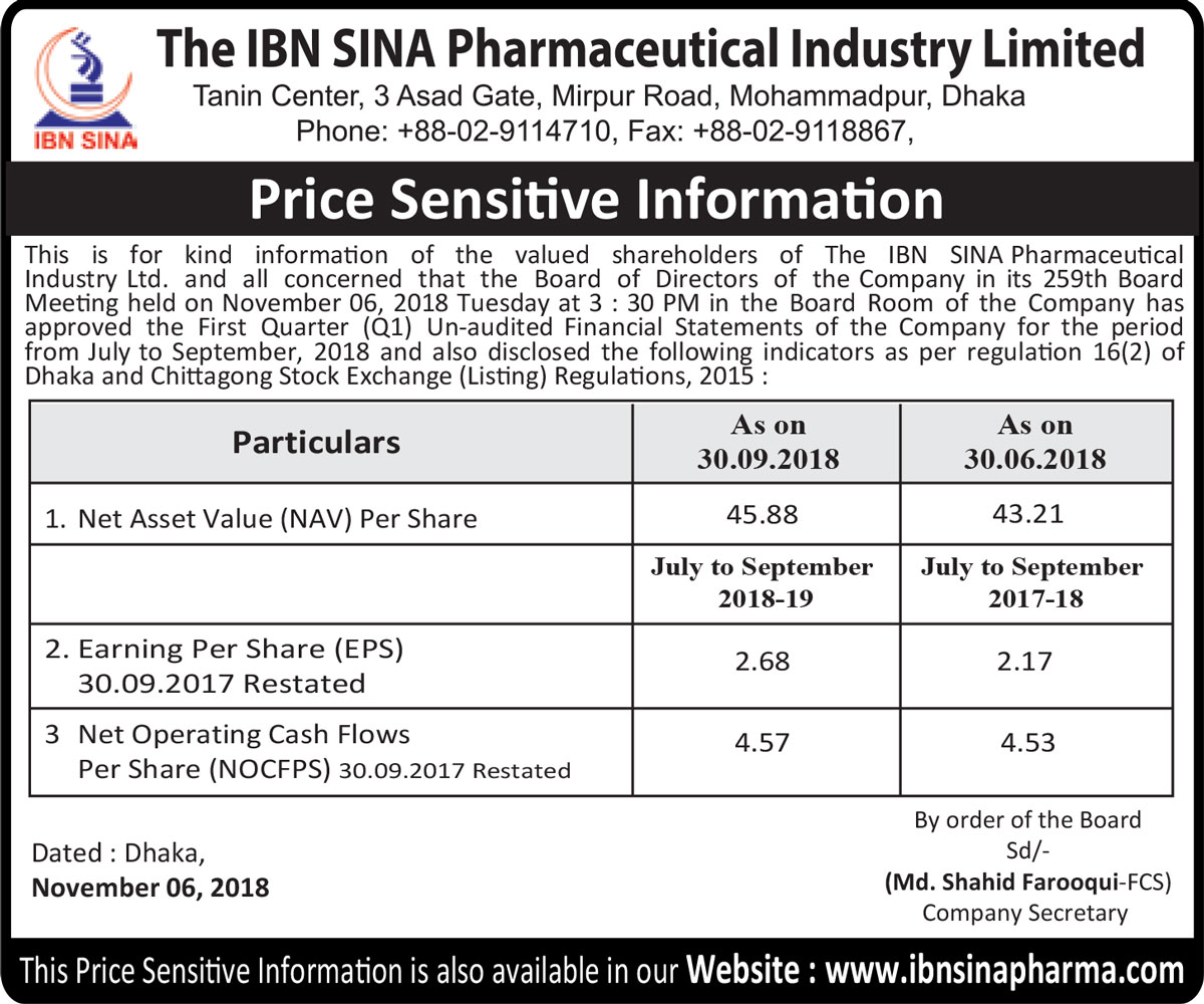 Price Sensitive Information of The IBN SINA Pharmaceutical Industry PLC
