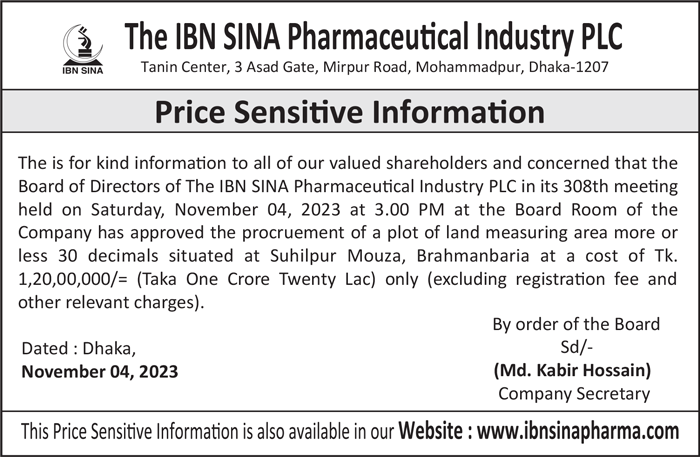 Price Sensitive Information of The IBN SINA Pharmaceutical Industry PLC