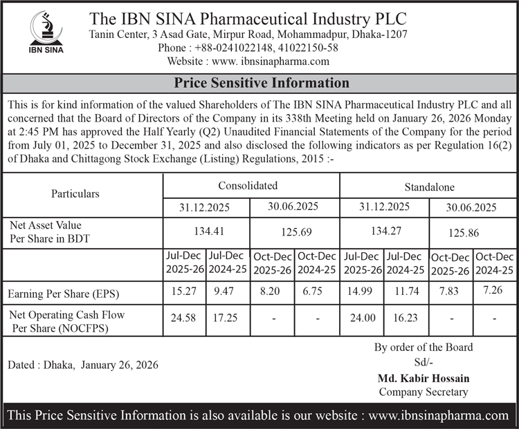 Price Sensitive Information of The IBN SINA Pharmaceuticals Industry PLC