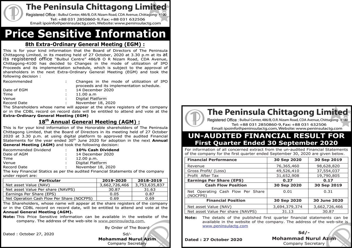 Price Sensitive Information of The Peninsula Chittagong Limited