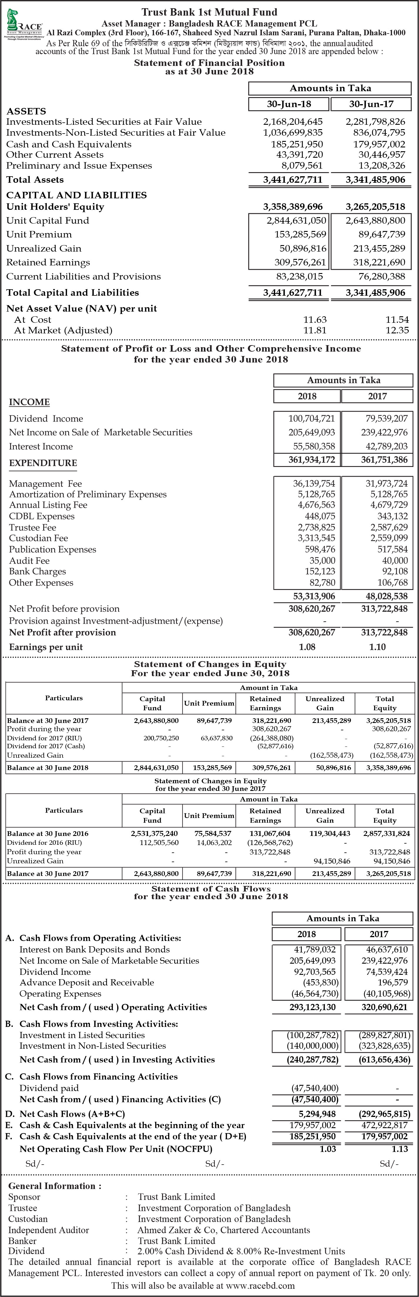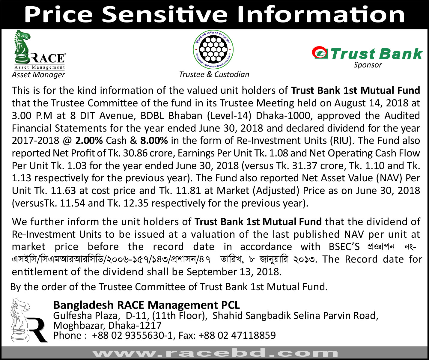 Price Sensitive Information of Trust Bank 1st Mutual Fund